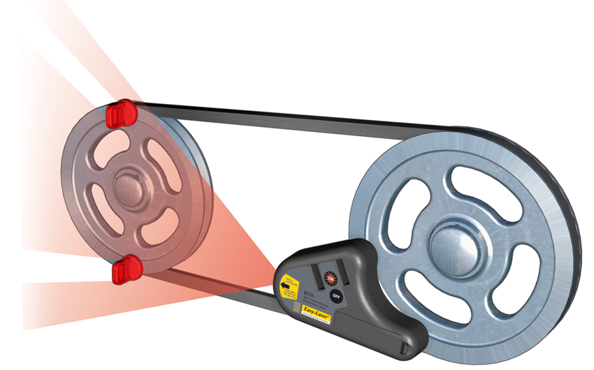 Es la herramienta perfecta para alinear poleas. Se instala en pocos segundos y la línea láser que se proyecta en los objetivos permite comprobar y corregir rápidamente la des-alineación.